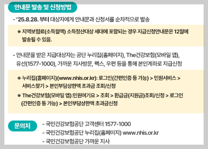 - 8월 말부터 국민건강보험공단이 환급 대상자에게 안내문을 발송합니다.