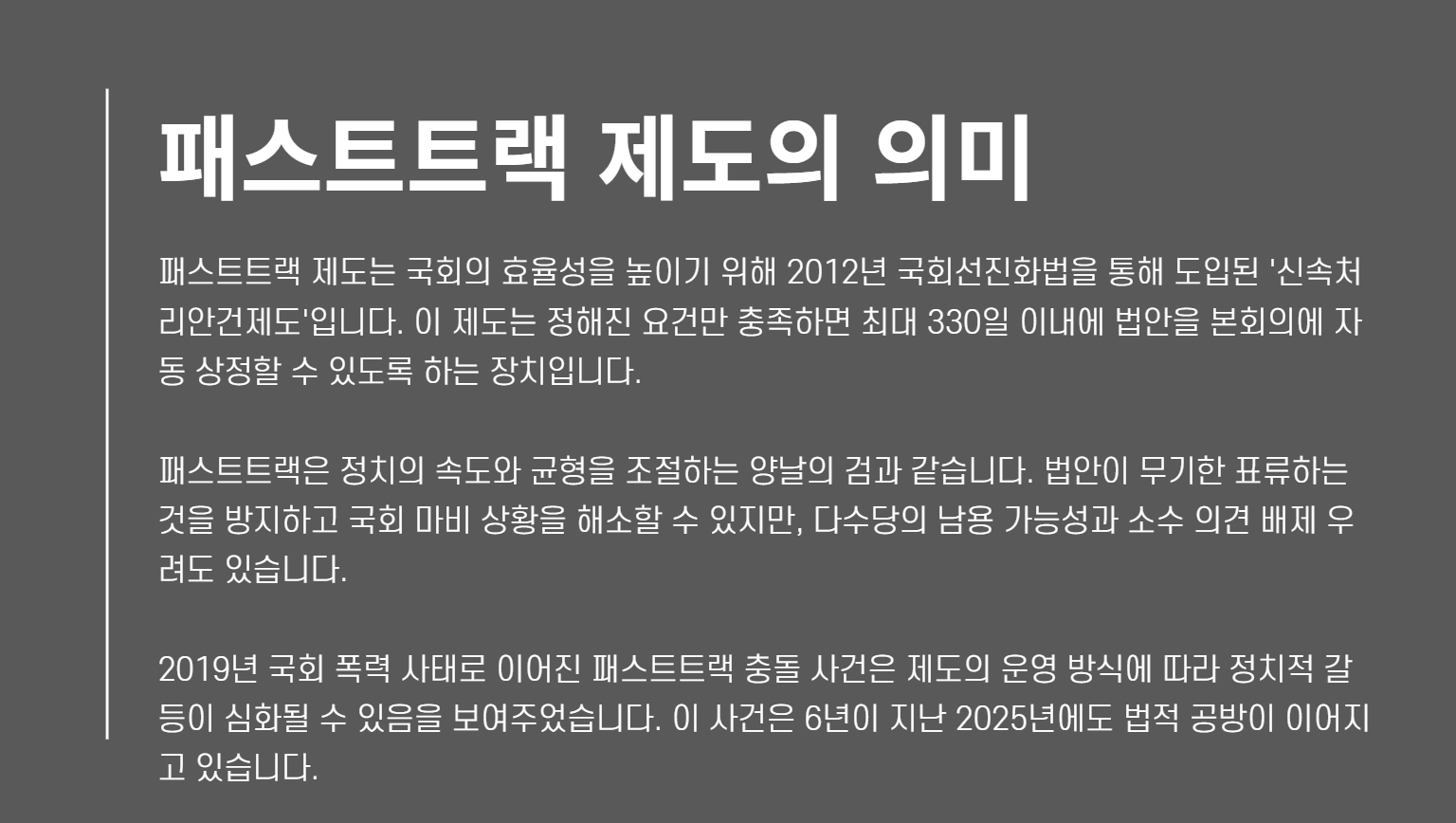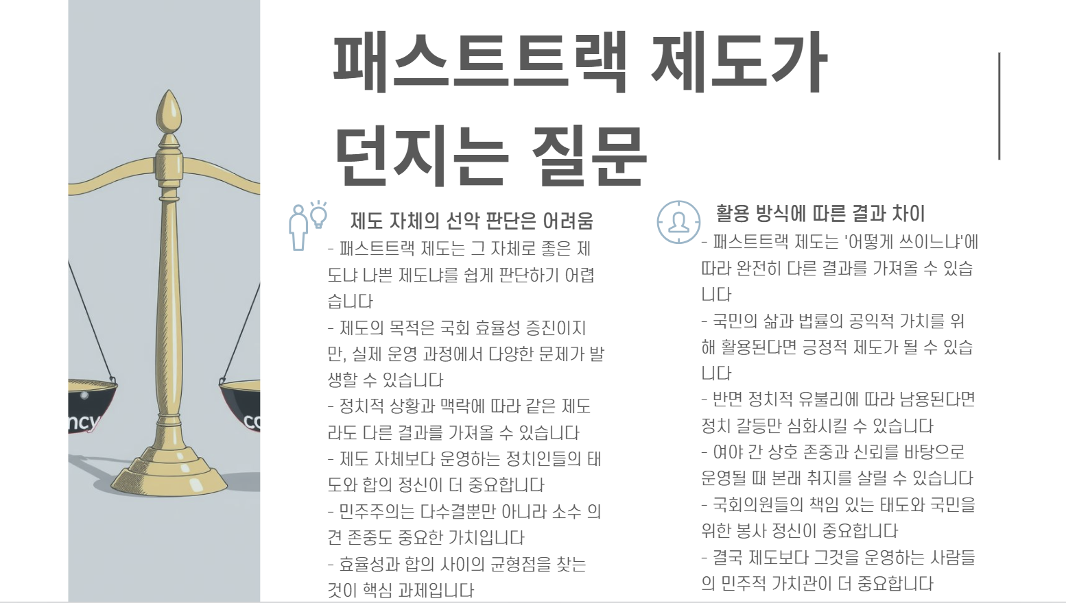 패스트트랙은 정치의 속도와 균형을 조절하는 양날의 검입니다.